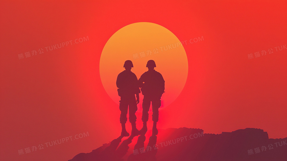 本作品内容为红色士兵剪影简约喜庆背景, 格式为 jpg, 大小3 MB, 图片尺寸为2912 x 1632, 作品中背景图片无需修改, 源文件无水印,可以直接使用, 欢迎使用熊猫办公。 如认为平台内容涉嫌侵权,可通过邮件:tousu@tukuppt.com提出书面通知,我们将及时处理。