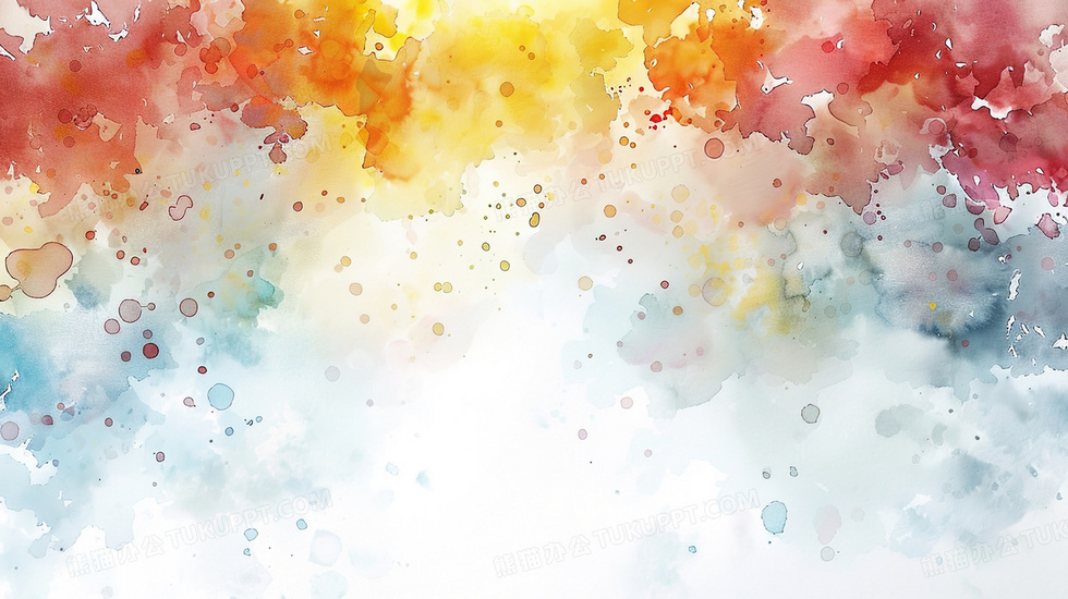 本作品内容为彩色水彩晕染背景, 格式为 jpg, 大小3 MB, 图片尺寸为2912 x 1632, 作品中背景图片无需修改, 源文件无水印,可以直接使用, 欢迎使用熊猫办公。 如认为平台内容涉嫌侵权,可通过邮件:tousu@tukuppt.com提出书面通知,我们将及时处理。