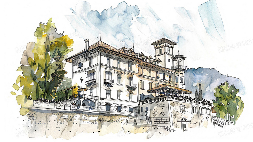 本作品内容为瑞士卢加诺城堡手绘水彩插画, 格式为 jpg, 大小4 MB, 图片尺寸为2912 x 1632, 源文件无水印, 欢迎使用熊猫办公。 如认为平台内容涉嫌侵权,可通过邮件:tousu@tukuppt.com提出书面通知,我们将及时处理。