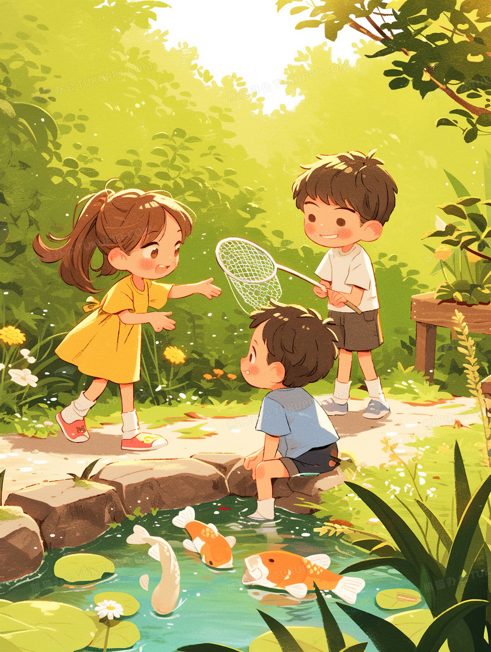 本作品内容为夏天和朋友池塘边玩耍插画, 格式为 jpg, 大小4 MB, 图片尺寸为1856 x 2464, 源文件无水印, 欢迎使用熊猫办公。 如认为平台内容涉嫌侵权,可通过邮件:tousu@tukuppt.com提出书面通知,我们将及时处理。
