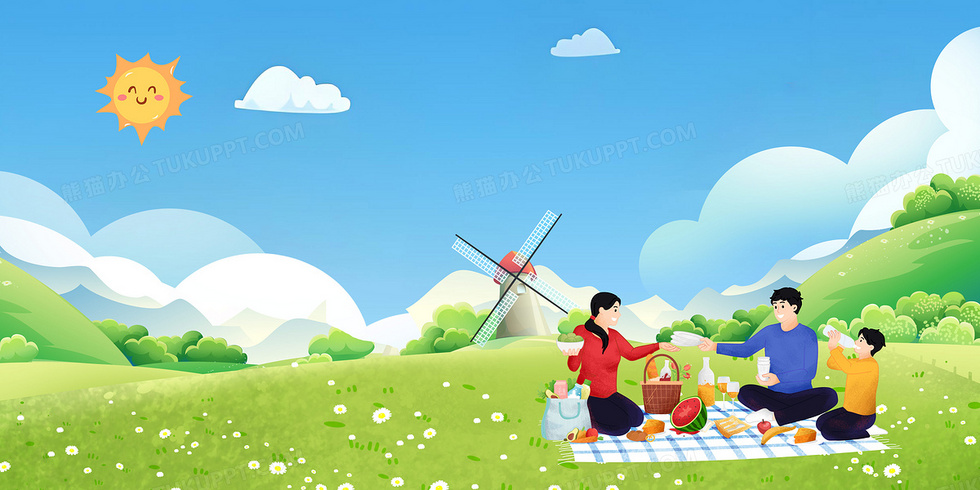 本作品内容为卡通插画风一家人户外野餐背景, 格式为 psd, 大小22 MB, 图片尺寸为4724 x 2362, 作品中背景图片无需修改, 源文件无水印,可以直接使用, 欢迎使用熊猫办公。 如认为平台内容涉嫌侵权,可通过邮件:tousu@tukuppt.com提出书面通知,我们将及时处理。