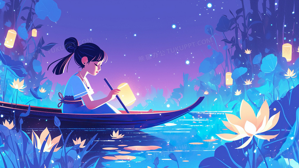 本作品内容为卡通女孩中元节划船放河灯插画, 格式为 jpg, 大小3 MB, 图片尺寸为2912 x 1632, 源文件无水印, 欢迎使用熊猫办公。 如认为平台内容涉嫌侵权,可通过邮件:tousu@tukuppt.com提出书面通知,我们将及时处理。