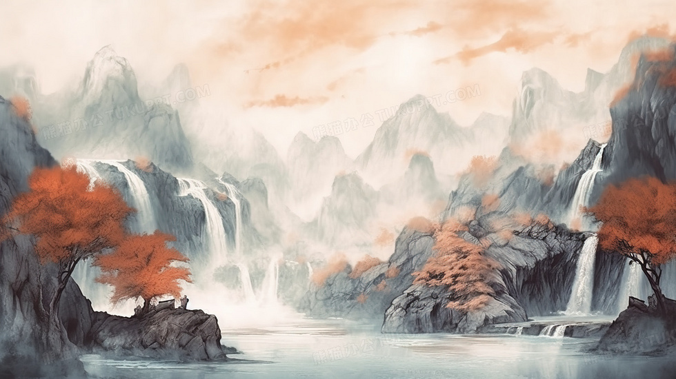 本作品内容为中国风古典山水瀑布水墨绘画, 格式为 jpg, 大小5 MB, 图片尺寸为2912 x 1632, 源文件无水印, 欢迎使用熊猫办公。 如认为平台内容涉嫌侵权,可通过邮件:tousu@tukuppt.com提出书面通知,我们将及时处理。