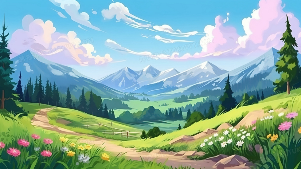本作品内容为绿色夏季丘陵自然风景插画, 格式为 jpg, 大小5 MB, 图片尺寸为2912 x 1632, 源文件无水印, 欢迎使用熊猫办公。 如认为平台内容涉嫌侵权,可通过邮件:tousu@tukuppt.com提出书面通知,我们将及时处理。