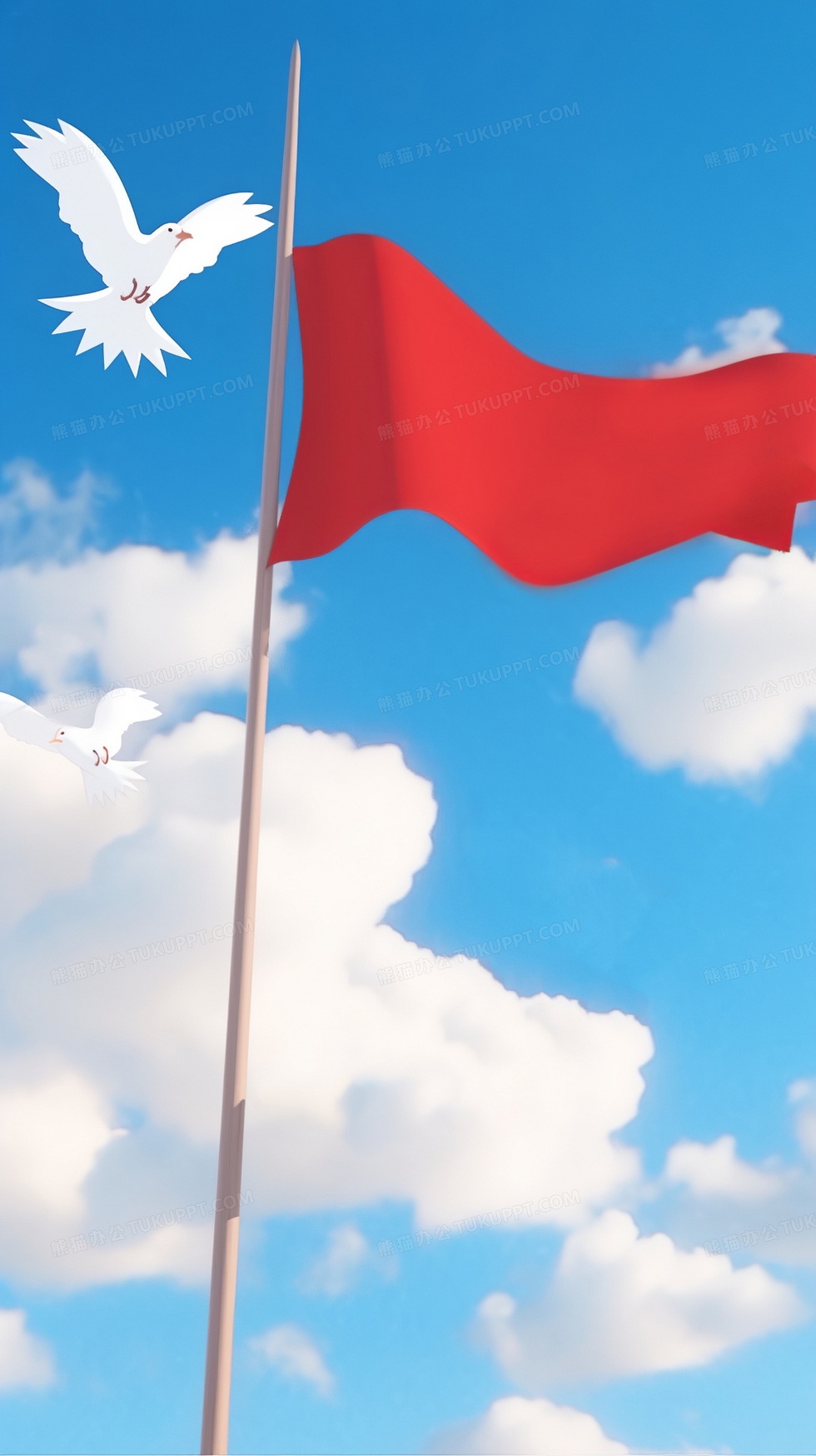本作品内容为蓝天白云红旗白鸽创意插画背景, 格式为 jpg, 大小2 MB, 图片尺寸为1632 x 2912, 源文件无水印, 欢迎使用熊猫办公。 如认为平台内容涉嫌侵权,可通过邮件:tousu@tukuppt.com提出书面通知,我们将及时处理。