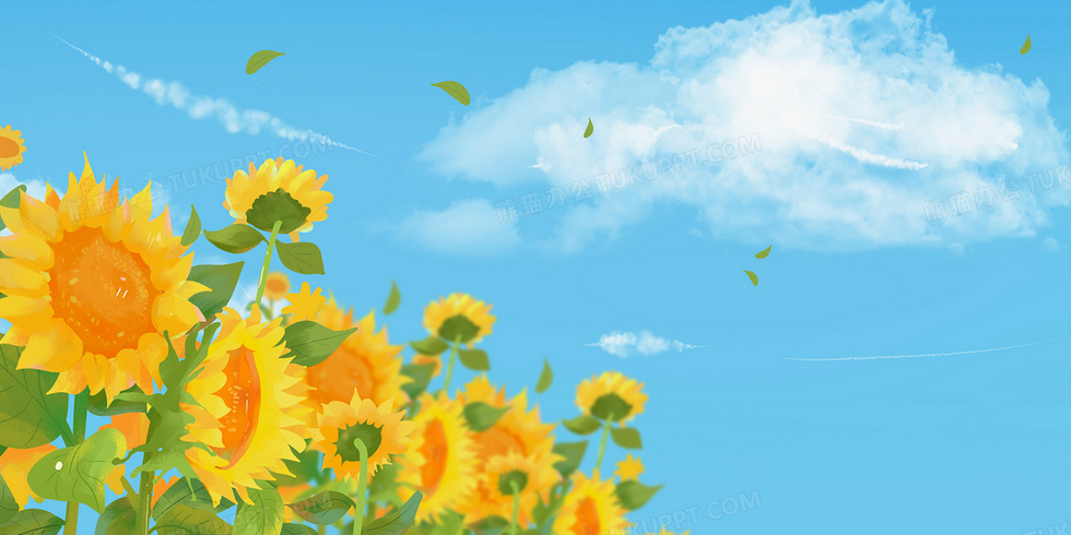 本作品内容为手绘向日葵天空背景, 格式为 psd, 大小20 MB, 图片尺寸为4722 x 2361, 作品中背景图片无需修改, 源文件无水印,可以直接使用, 欢迎使用熊猫办公。 如认为平台内容涉嫌侵权,可通过邮件:tousu@tukuppt.com提出书面通知,我们将及时处理。