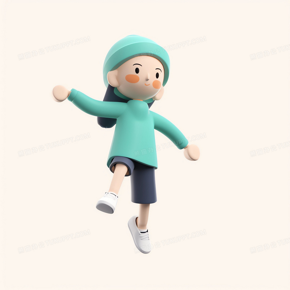 本作品内容为戴着绿色毛线帽跳跃奔跑的可爱小人3D人物模型, 格式为 jpg, 大小1 MB, 图片尺寸为2048 x 2048, 源文件无水印, 欢迎使用熊猫办公。 如认为平台内容涉嫌侵权,可通过邮件:tousu@tukuppt.com提出书面通知,我们将及时处理。