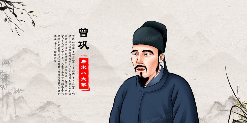 本作品内容为中国古代唐宋八大家之曾巩人物介绍插画, 格式为 psd, 大小89 MB, 请使用软件PhotoShop(CC)打开, 源文件无水印, 欢迎使用熊猫办公。 如认为平台内容涉嫌侵权,可通过邮件:tousu@tukuppt.com提出书面通知,我们将及时处理。
