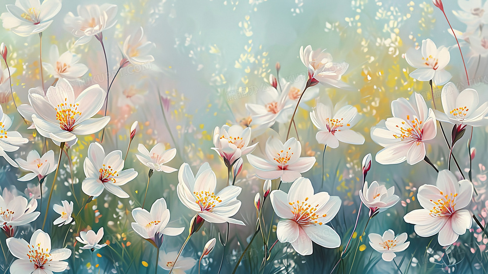 本作品内容为盛开的白色鲜花花丛插画, 格式为 jpg, 大小3 MB, 图片尺寸为2912 x 1632, 源文件无水印, 欢迎使用熊猫办公。 如认为平台内容涉嫌侵权,可通过邮件:tousu@tukuppt.com提出书面通知,我们将及时处理。