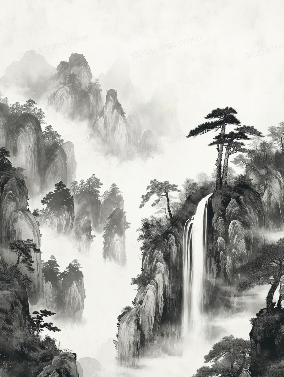 本作品内容为丛山的松树山水水墨插画, 格式为 jpg, 大小3 MB, 图片尺寸为1856 x 2464, 源文件无水印, 欢迎使用熊猫办公。 如认为平台内容涉嫌侵权,可通过邮件:tousu@tukuppt.com提出书面通知,我们将及时处理。
