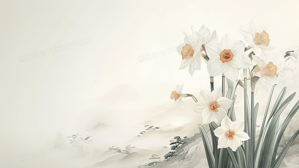 本作品内容为盛开的水仙花装饰插画, 格式为 jpg, 大小2 MB, 图片尺寸为2912 x 1632, 源文件无水印, 欢迎使用熊猫办公。 如认为平台内容涉嫌侵权,可通过邮件:tousu@tukuppt.com提出书面通知,我们将及时处理。