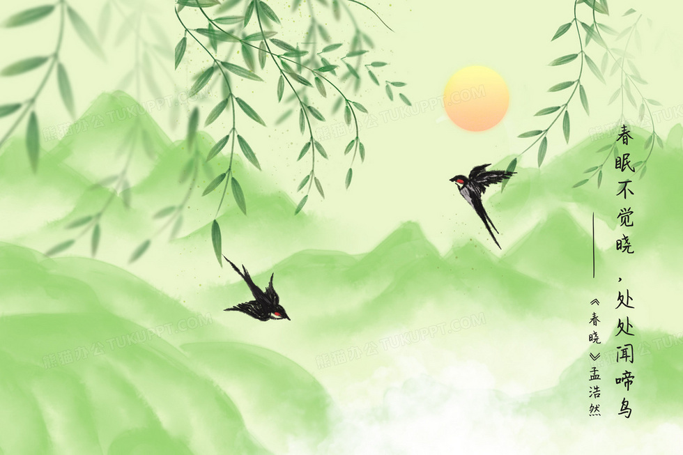 本作品内容为春晓水墨山水风古诗创意插画, 格式为 psd, 大小22 MB, 请使用软件PhotoShop(CC)打开, 源文件无水印, 欢迎使用熊猫办公。 如认为平台内容涉嫌侵权,可通过邮件:tousu@tukuppt.com提出书面通知,我们将及时处理。