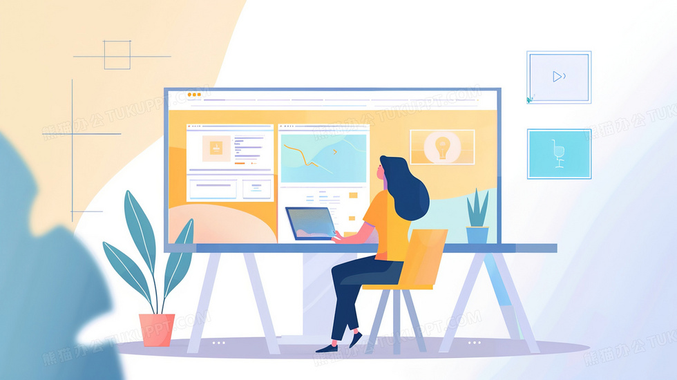 本作品内容为商务女性白领办公场景插画, 格式为 jpg, 大小2 MB, 图片尺寸为2912 x 1632, 源文件无水印, 欢迎使用熊猫办公。 如认为平台内容涉嫌侵权,可通过邮件:tousu@tukuppt.com提出书面通知,我们将及时处理。
