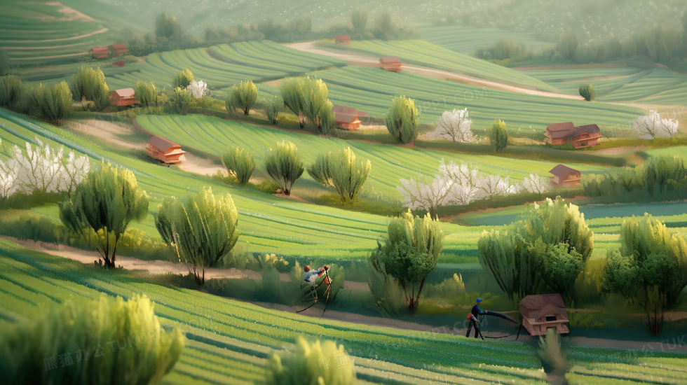 本作品内容为山村稻田里工作的农民插画, 格式为 jpg, 大小3 MB, 图片尺寸为2912 x 1632, 源文件无水印, 欢迎使用熊猫办公。 如认为平台内容涉嫌侵权,可通过邮件:tousu@tukuppt.com提出书面通知,我们将及时处理。
