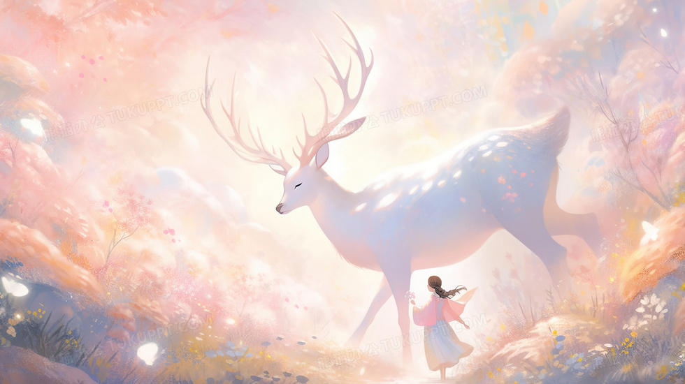本作品内容为奇幻森林里的驯鹿和少女插画, 格式为 jpg, 大小2 MB, 图片尺寸为2912 x 1632, 源文件无水印, 欢迎使用熊猫办公。 如认为平台内容涉嫌侵权,可通过邮件:tousu@tukuppt.com提出书面通知,我们将及时处理。