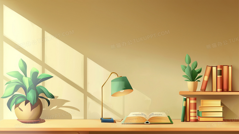 本作品内容为简约卡通室内书桌背景, 格式为 jpg, 大小4 MB, 图片尺寸为2912 x 1632, 作品中背景图片无需修改, 源文件无水印,可以直接使用, 欢迎使用熊猫办公。 如认为平台内容涉嫌侵权,可通过邮件:tousu@tukuppt.com提出书面通知,我们将及时处理。
