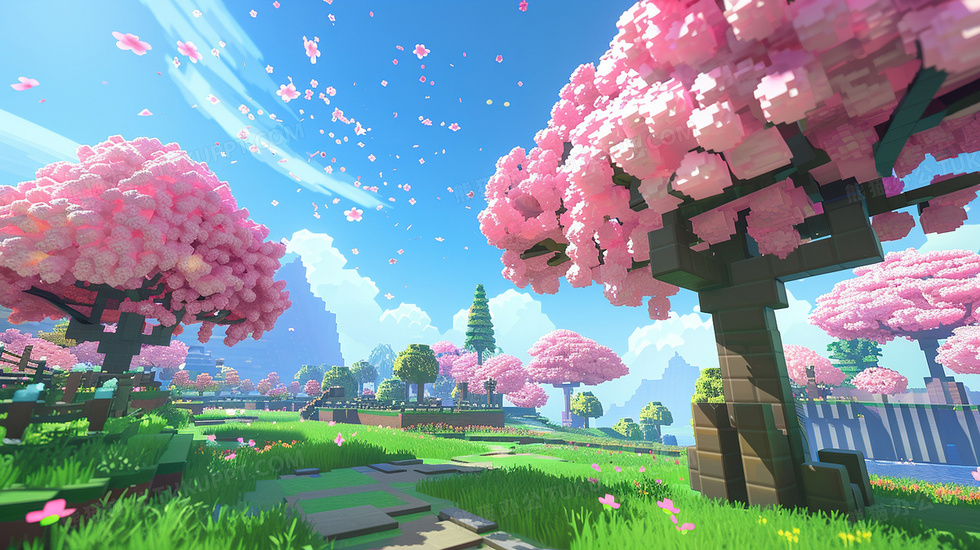 首页 > 插画 > 科技艺术 > 唯美清新 > 春天积木风植物游戏场景插画
