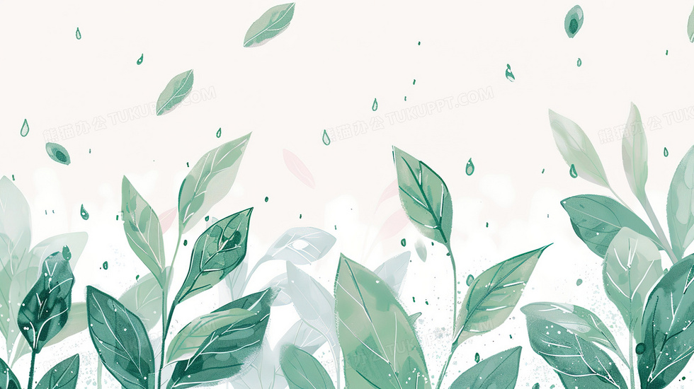 本作品内容为春天雨滴树叶简约水彩手绘背景图, 格式为 jpg, 大小3 MB, 图片尺寸为2912 x 1632, 作品中背景图片无需修改, 源文件无水印,可以直接使用, 欢迎使用熊猫办公。 如认为平台内容涉嫌侵权,可通过邮件:tousu@tukuppt.com提出书面通知,我们将及时处理。