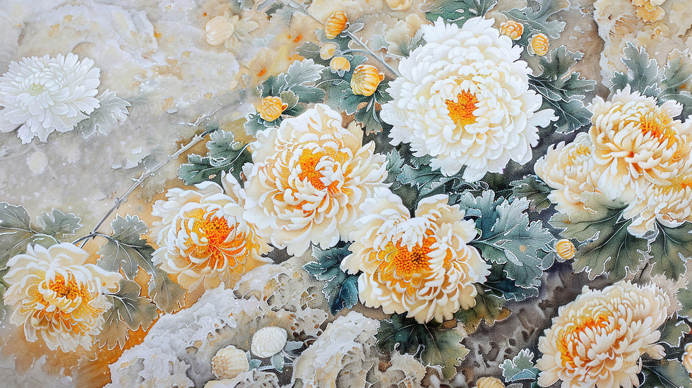 本作品内容为中国风菊花复古风插画, 格式为 jpg, 大小6 MB, 图片尺寸为2912 x 1632, 源文件无水印, 欢迎使用熊猫办公。 如认为平台内容涉嫌侵权,可通过邮件:tousu@tukuppt.com提出书面通知,我们将及时处理。
