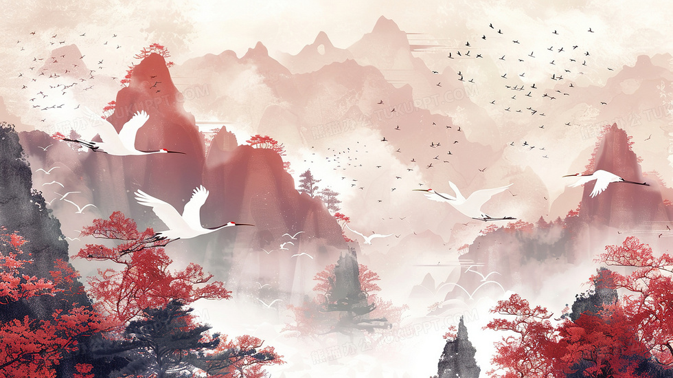 本作品内容为中国风唯美山水白鹤风景插画, 格式为 jpg, 大小4 MB, 图片尺寸为2912 x 1632, 源文件无水印, 欢迎使用熊猫办公。 如认为平台内容涉嫌侵权,可通过邮件:tousu@tukuppt.com提出书面通知,我们将及时处理。