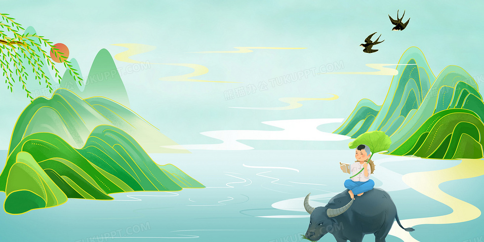 本作品内容为国潮风牧童美景合成背景, 格式为 psd, 大小22 MB, 图片尺寸为4724 x 2362, 作品中背景图片无需修改, 源文件无水印,可以直接使用, 欢迎使用熊猫办公。 如认为平台内容涉嫌侵权,可通过邮件:tousu@tukuppt.com提出书面通知,我们将及时处理。
