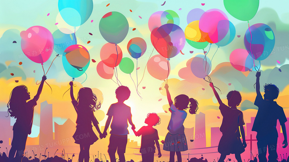 本作品内容为孩子们拿着气球玩耍的剪影插画, 格式为 jpg, 大小3 MB, 图片尺寸为2912 x 1632, 源文件无水印, 欢迎使用熊猫办公。 如认为平台内容涉嫌侵权,可通过邮件:tousu@tukuppt.com提出书面通知,我们将及时处理。