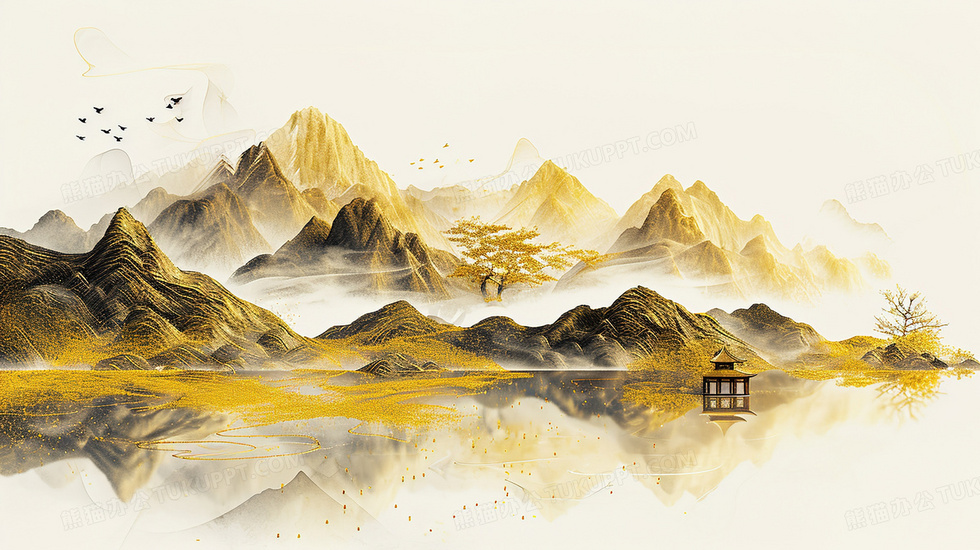 本作品内容为大气鎏金中国风立体山水画, 格式为 jpg, 大小3 MB, 图片尺寸为2912 x 1632, 源文件无水印, 欢迎使用熊猫办公。 如认为平台内容涉嫌侵权,可通过邮件:tousu@tukuppt.com提出书面通知,我们将及时处理。