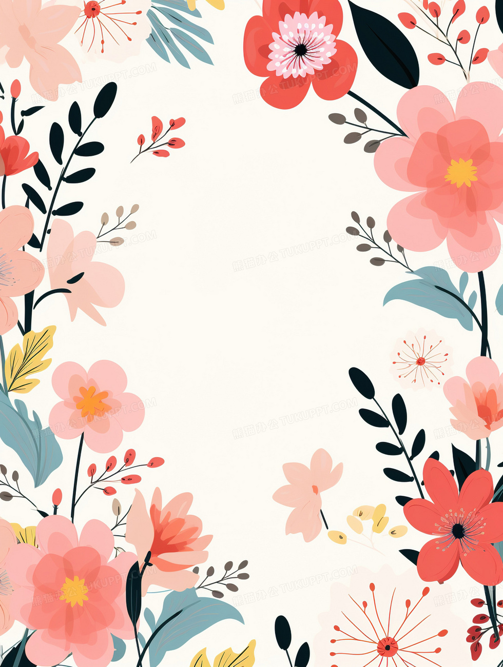 本作品内容为小清新卡通植物花卉边框背景, 格式为 jpg, 大小2 MB, 图片尺寸为1856 x 2464, 作品中背景图片无需修改, 源文件无水印,可以直接使用, 欢迎使用熊猫办公。 如认为平台内容涉嫌侵权,可通过邮件:tousu@tukuppt.com提出书面通知,我们将及时处理。