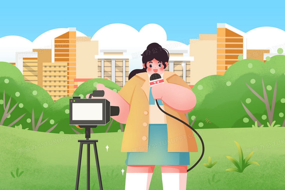 本作品内容为劳动节女性职业系列之女记者在户外播报新闻插画, 格式为 psd, 大小28 MB, 请使用软件PhotoShop(CS6)打开, 源文件无水印, 欢迎使用熊猫办公。 如认为平台内容涉嫌侵权,可通过邮件:tousu@tukuppt.com提出书面通知,我们将及时处理。