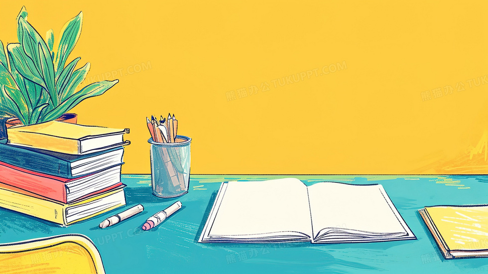 本作品内容为书桌绿植学习用品插画, 格式为 jpg, 大小3 MB, 图片尺寸为2912 x 1632, 源文件无水印, 欢迎使用熊猫办公。 如认为平台内容涉嫌侵权,可通过邮件:tousu@tukuppt.com提出书面通知,我们将及时处理。
