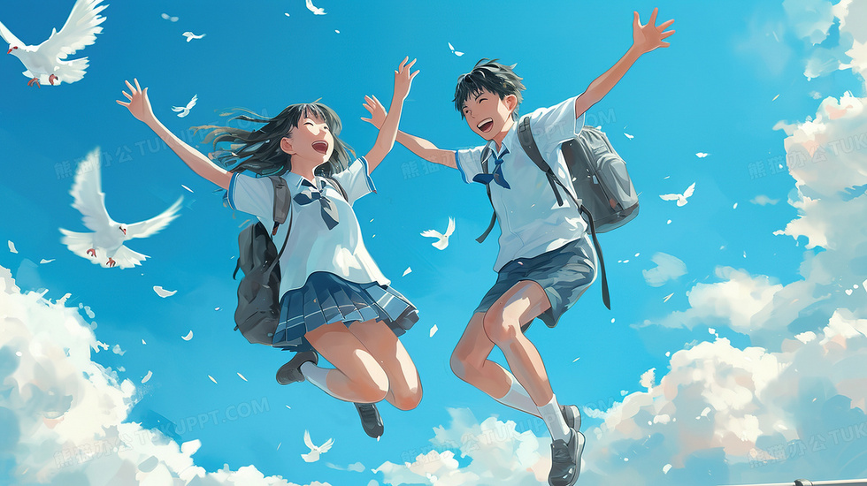 本作品内容为蓝色致青春毕业季迎接新学期插画, 格式为 jpg, 大小3 MB, 图片尺寸为2912 x 1632, 源文件无水印, 欢迎使用熊猫办公。 如认为平台内容涉嫌侵权,可通过邮件:tousu@tukuppt.com提出书面通知,我们将及时处理。