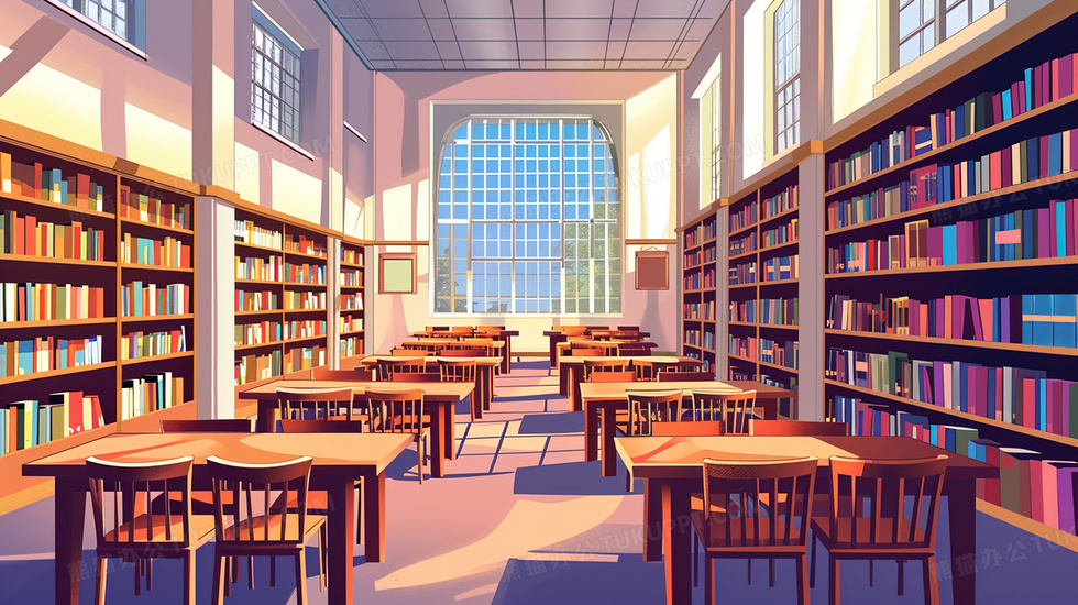 本作品内容为彩色扁平化学校图书馆插画, 格式为 jpg, 大小3 MB, 图片尺寸为2912 x 1632, 源文件无水印, 欢迎使用熊猫办公。 如认为平台内容涉嫌侵权,可通过邮件:tousu@tukuppt.com提出书面通知,我们将及时处理。