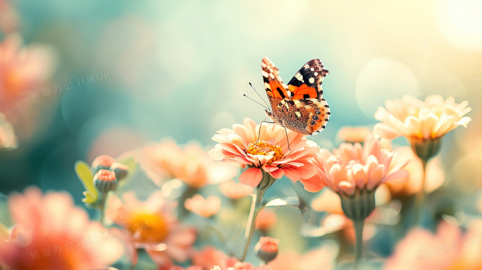 本作品内容为春天鲜花上的飞舞蝴蝶插画, 格式为 jpg, 大小3 MB, 图片尺寸为2912 x 1632, 源文件无水印, 欢迎使用熊猫办公。 如认为平台内容涉嫌侵权,可通过邮件:tousu@tukuppt.com提出书面通知,我们将及时处理。