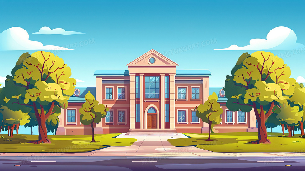 本作品内容为卡通楼房教学楼建筑插画, 格式为 jpg, 大小3 MB, 图片尺寸为2912 x 1632, 源文件无水印, 欢迎使用熊猫办公。 如认为平台内容涉嫌侵权,可通过邮件:tousu@tukuppt.com提出书面通知,我们将及时处理。