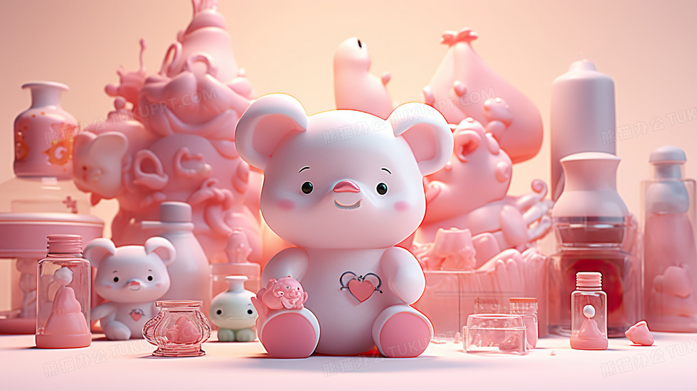 首页 > 插画 > 科技艺术 > 卡通漫画 > 粉色C4D卡通婴儿儿童玩具模型插画
