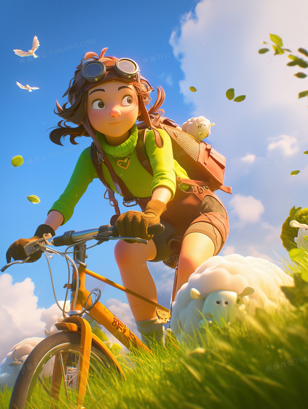 首页 > 插画 > 科技艺术 > 卡通漫画 > 3D草地骑行的女孩子插画