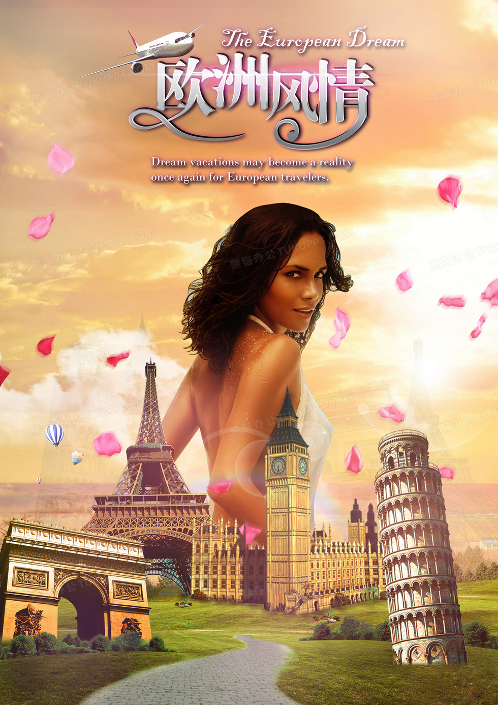 本作品内容为创意合成欧洲风情海报, 格式为 psd, 图片尺寸为2480 x 3508, 作品中背景图片无需修改, 源文件无水印,可以直接使用, 欢迎使用熊猫办公。 如认为平台内容涉嫌侵权,可通过邮件:tousu@tukuppt.com提出书面通知,我们将及时处理。