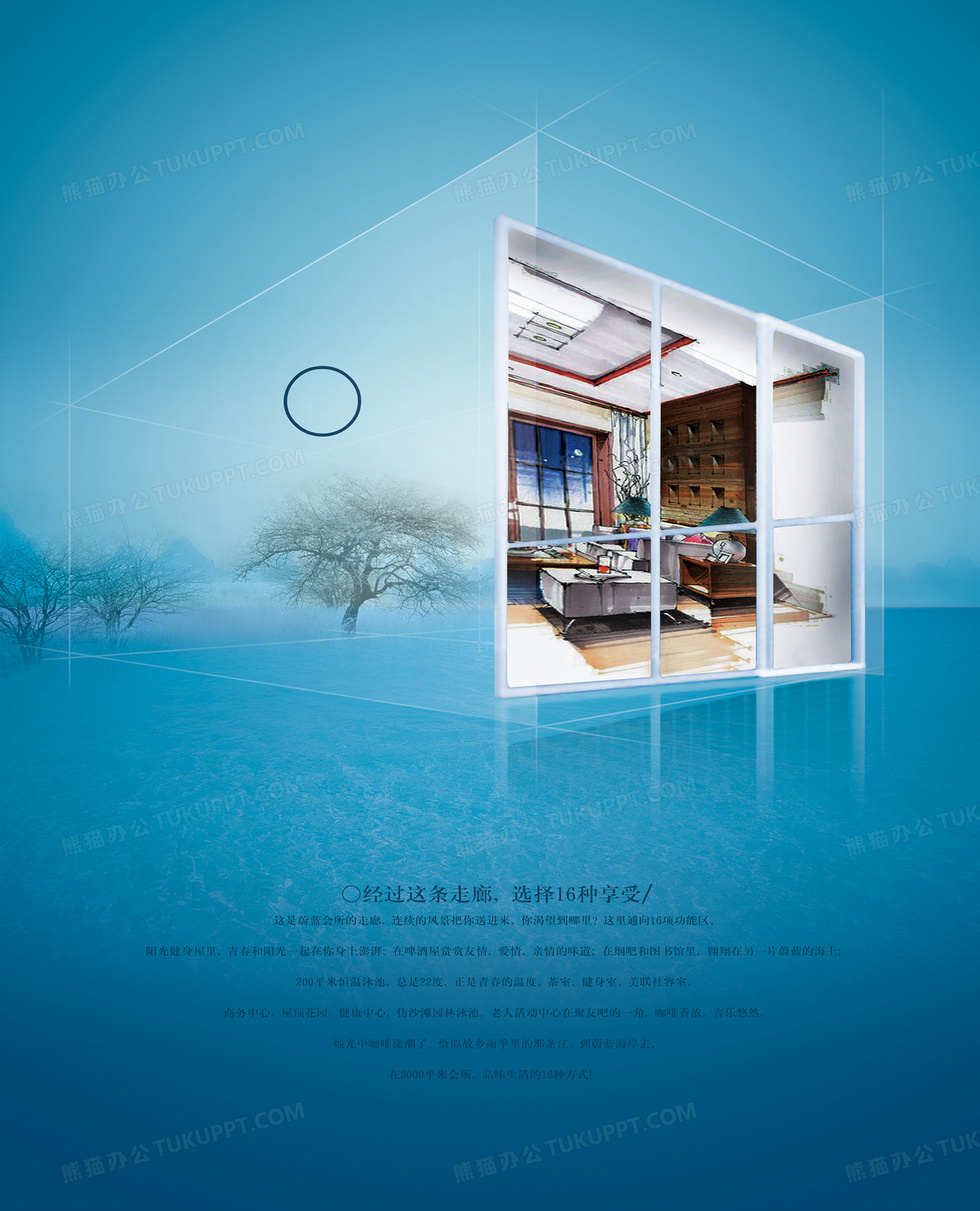 本作品内容为蓝色自然感觉房地产广告, 格式为 psd, 图片尺寸为3500 x 4324, 作品中背景图片无需修改, 源文件无水印,可以直接使用, 欢迎使用熊猫办公。 如认为平台内容涉嫌侵权,可通过邮件:tousu@tukuppt.com提出书面通知,我们将及时处理。