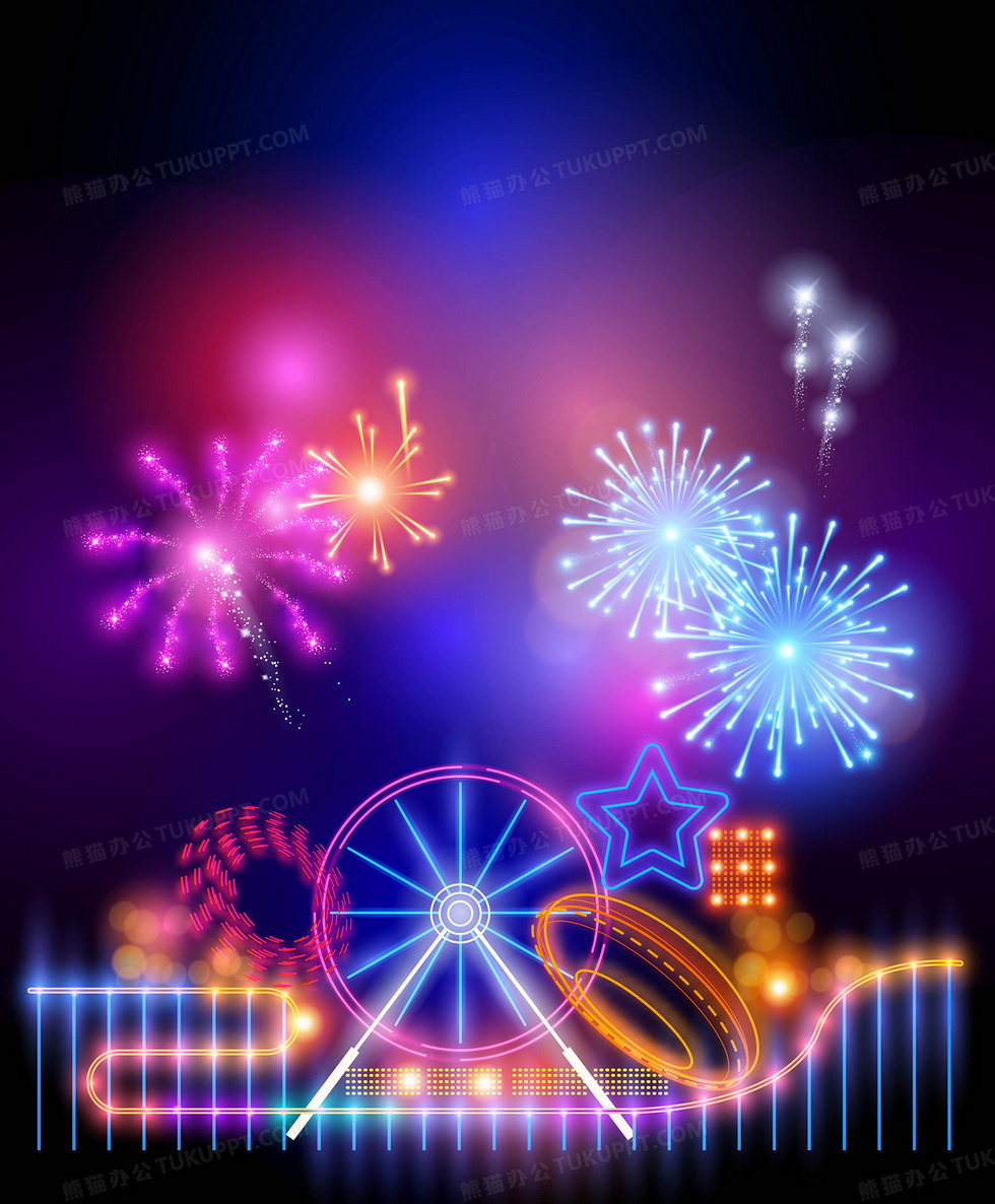 本作品内容为矢量炫光质感游乐场夜场背景, 格式为 ai, 图片尺寸为4276 x 5175, 作品中背景图片无需修改, 源文件无水印,可以直接使用, 欢迎使用熊猫办公。 如认为平台内容涉嫌侵权,可通过邮件:tousu@tukuppt.com提出书面通知,我们将及时处理。