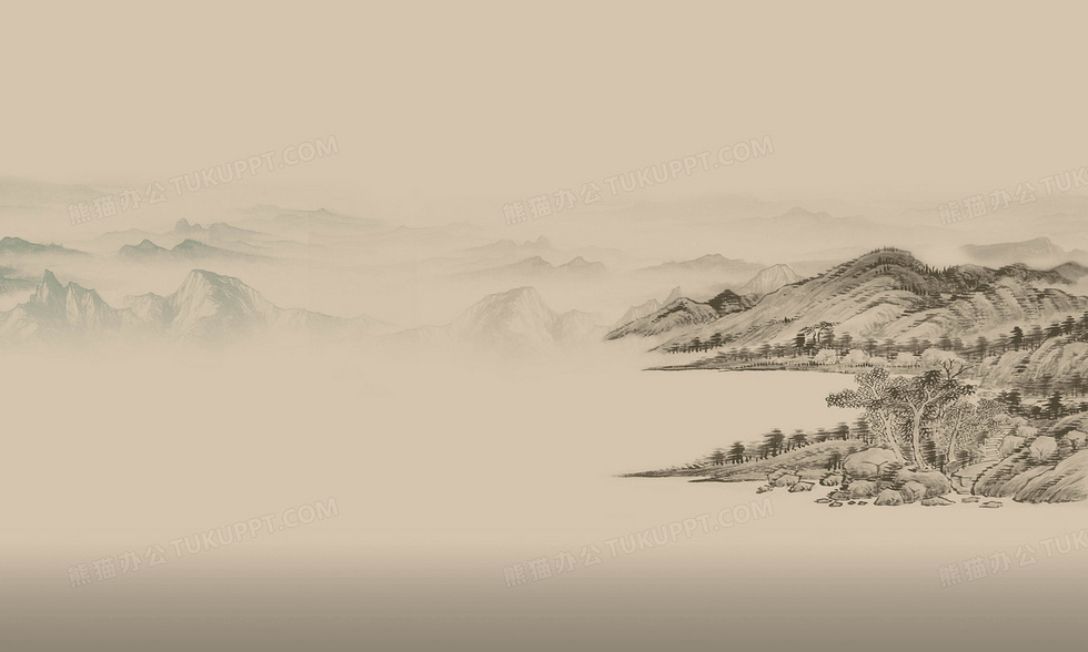 本作品内容为简约水墨山水海报背景模板, 格式为 psd, 图片尺寸为3750 x 2250, 作品中背景图片无需修改, 源文件无水印,可以直接使用, 欢迎使用熊猫办公。 如认为平台内容涉嫌侵权,可通过邮件:tousu@tukuppt.com提出书面通知,我们将及时处理。