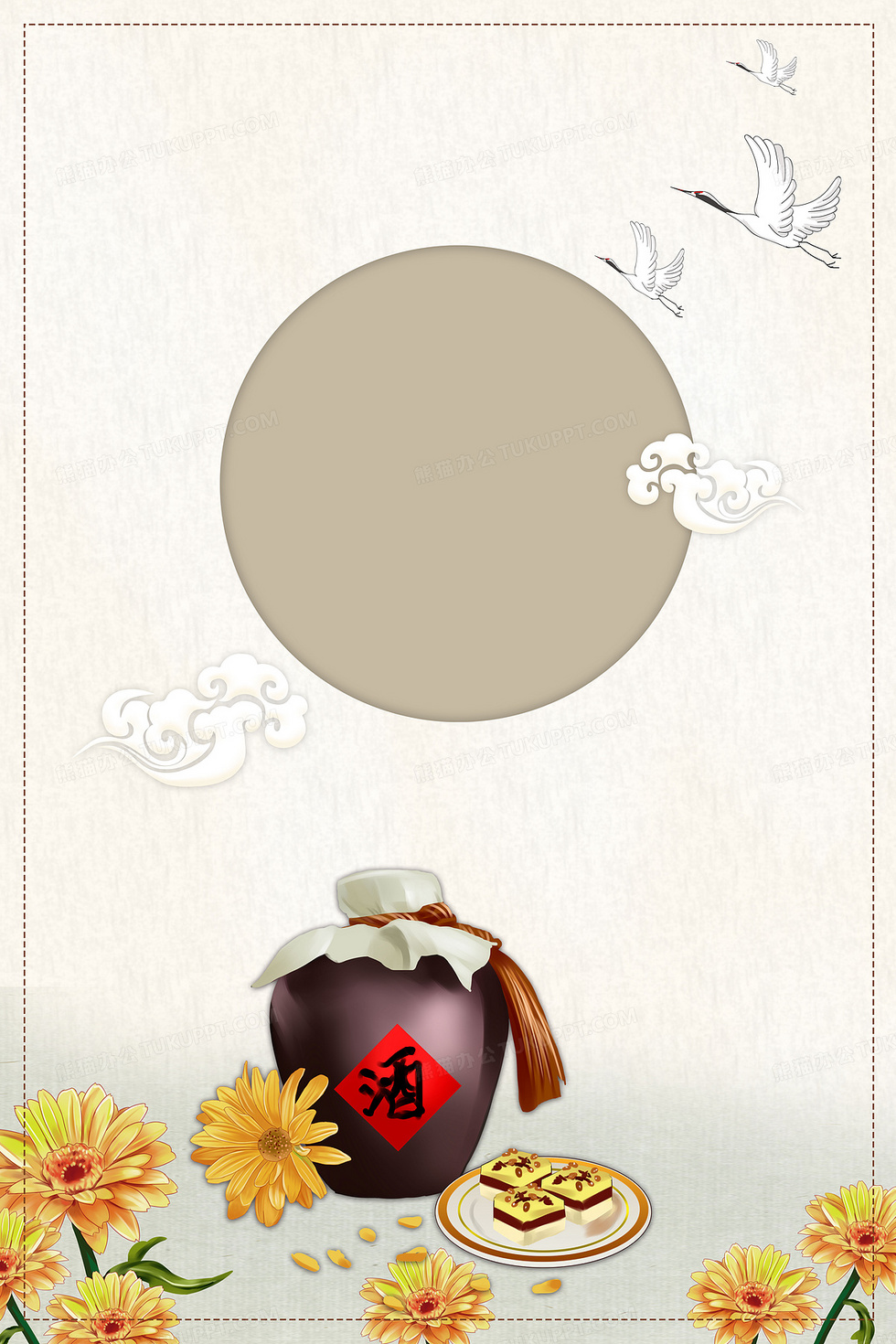 本作品内容为重阳节菊花酒菊花糕中国风背景, 格式为 psd, 大小112 MB, 图片尺寸为7086 x 10631, 作品中背景图片无需修改, 源文件无水印,可以直接使用, 欢迎使用熊猫办公。 如认为平台内容涉嫌侵权,可通过邮件:tousu@tukuppt.com提出书面通知,我们将及时处理。