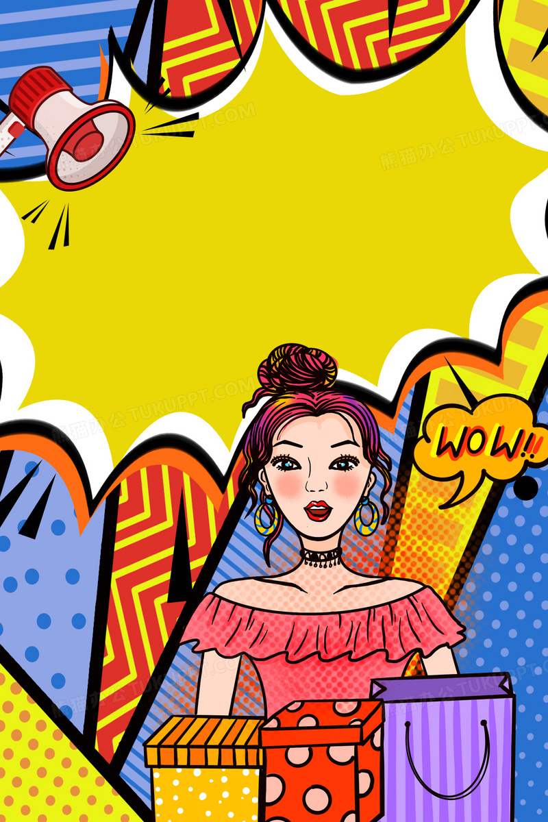 本作品内容为创意波普风电商活动促销背景, 格式为 psd, 大小5 MB, 图片尺寸为1181 x 1772, 作品中背景图片无需修改, 源文件无水印,可以直接使用, 欢迎使用熊猫办公。 如认为平台内容涉嫌侵权,可通过邮件:tousu@tukuppt.com提出书面通知,我们将及时处理。