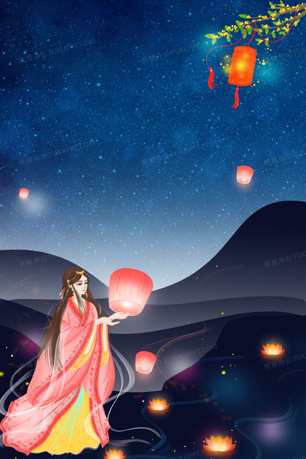 本作品内容为唯美汉服美女下元节祈福背景, 格式为 psd, 大小43 MB, 图片尺寸为2362 x 3543, 作品中背景图片无需修改, 源文件无水印,可以直接使用, 欢迎使用熊猫办公。 如认为平台内容涉嫌侵权,可通过邮件:tousu@tukuppt.com提出书面通知,我们将及时处理。