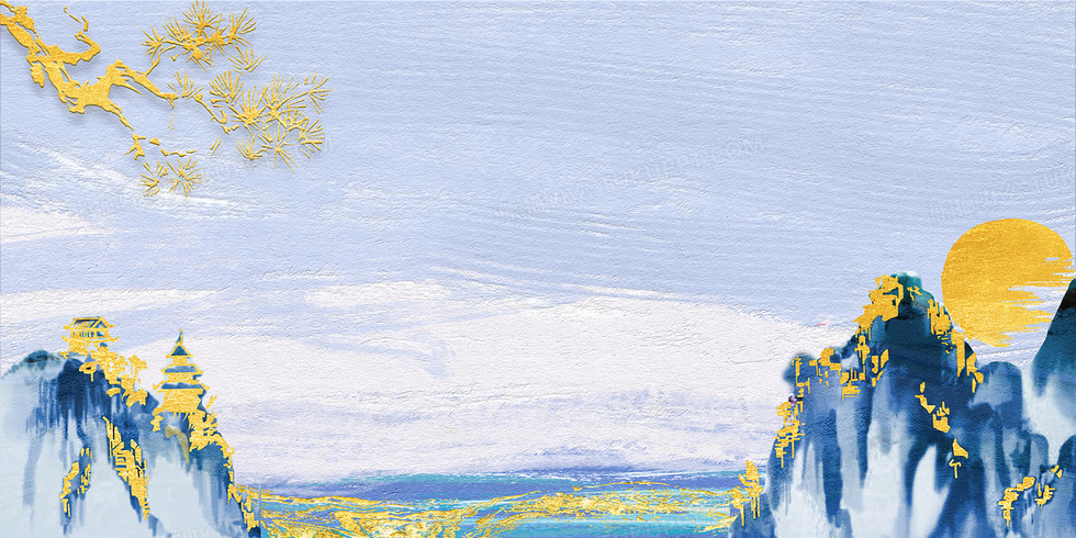 本作品内容为新中式质感鎏金中国风山水背景, 格式为 psd, 大小131 MB, 图片尺寸为4724 x 2362, 作品中背景图片无需修改, 源文件无水印,可以直接使用, 欢迎使用熊猫办公。 如认为平台内容涉嫌侵权,可通过邮件:tousu@tukuppt.com提出书面通知,我们将及时处理。
