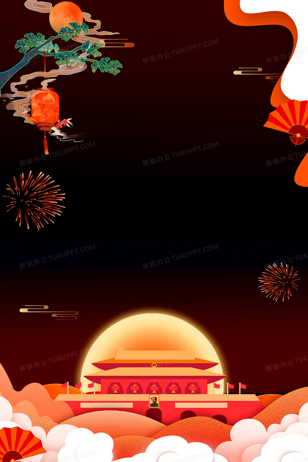 本作品内容为创意剪纸风国庆中秋双节同庆背景, 格式为 psd, 大小59 MB, 图片尺寸为7087 x 10630, 作品中背景图片无需修改, 源文件无水印,可以直接使用, 欢迎使用熊猫办公。 如认为平台内容涉嫌侵权,可通过邮件:tousu@tukuppt.com提出书面通知,我们将及时处理。