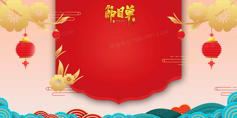 本作品内容为国潮新年节目单背景, 格式为 psd, 大小20 MB, 图片尺寸为4724 x 2362, 作品中背景图片无需修改, 源文件无水印,可以直接使用, 欢迎使用熊猫办公。 如认为平台内容涉嫌侵权,可通过邮件:tousu@tukuppt.com提出书面通知,我们将及时处理。