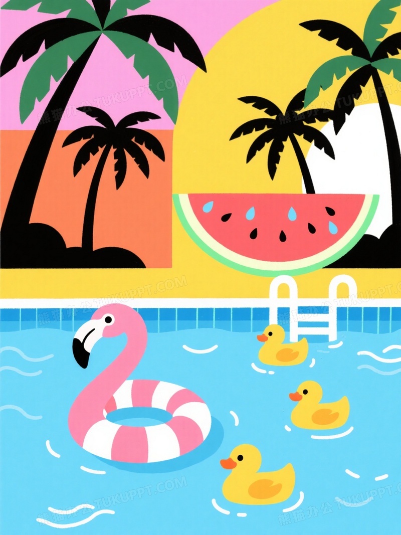 本作品内容为扁平插画风泳池乐园几何化火烈鸟泳圈与小鸭阵列, 格式为 jpg, 大小1 MB, 图片尺寸为1104 x 1472, 源文件无水印, 欢迎使用熊猫办公。 如认为平台内容涉嫌侵权,可通过邮件:tousu@tukuppt.com提出书面通知,我们将及时处理。