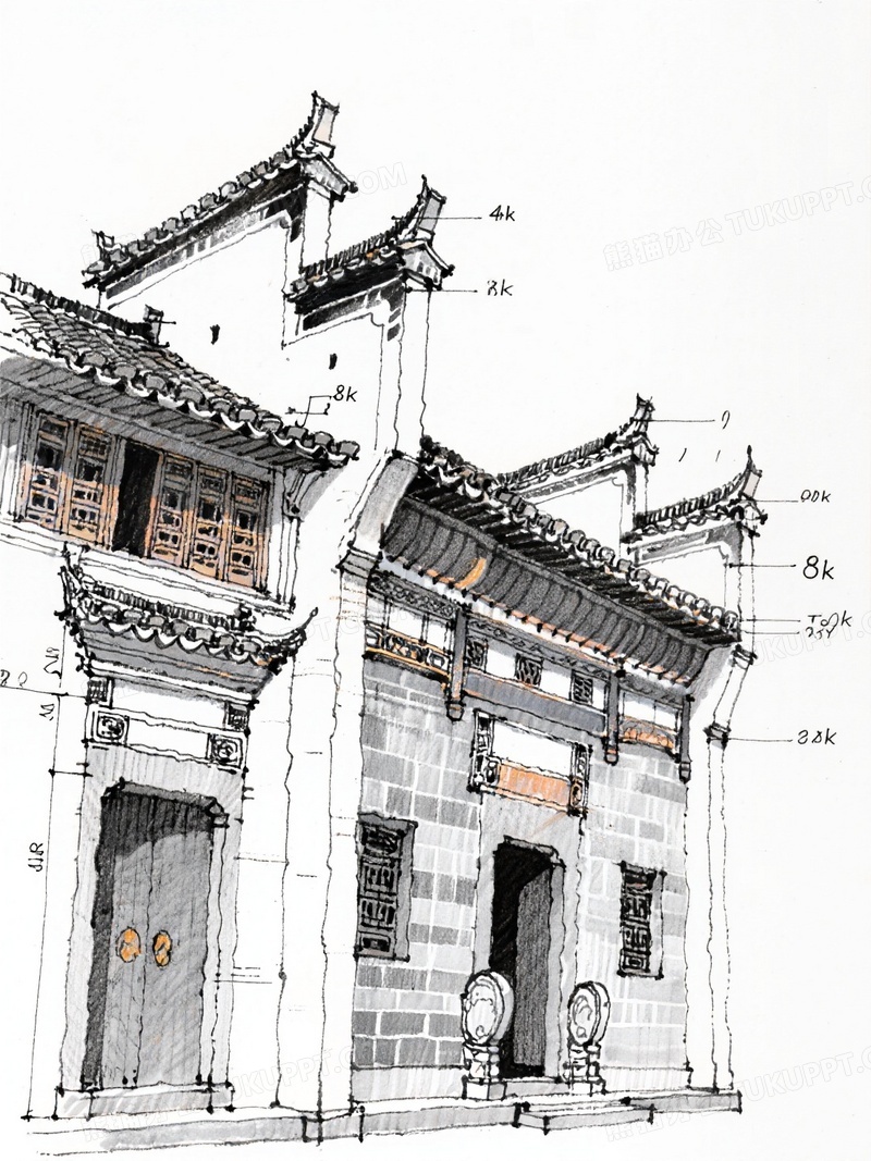 本作品内容为徽派古建筑风格铅笔素描效果, 格式为 jpg, 大小1 MB, 图片尺寸为1104 x 1472, 源文件无水印, 欢迎使用熊猫办公。 如认为平台内容涉嫌侵权,可通过邮件:tousu@tukuppt.com提出书面通知,我们将及时处理。