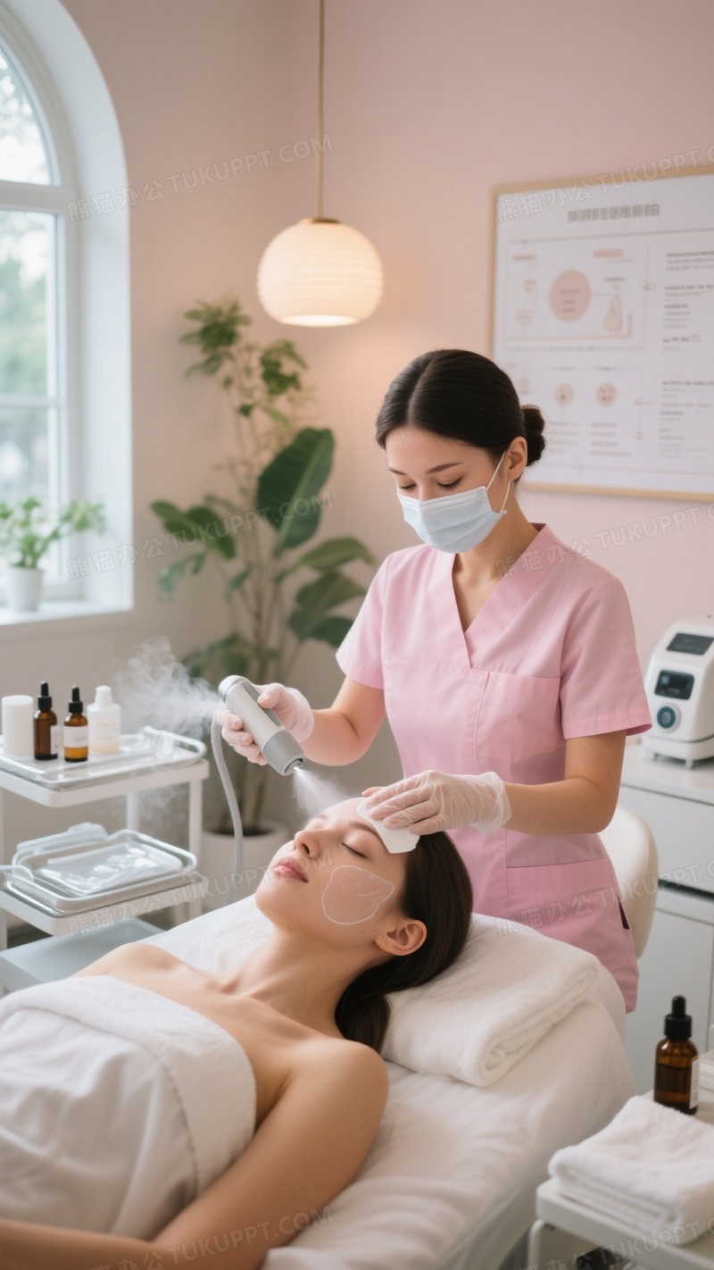本作品内容为专业美容院内场景身穿浅粉色制服的美容师佩戴医用口罩与一次性手套, 格式为 jpg, 大小1 MB, 图片尺寸为936 x 1664, 源文件无水印, 欢迎使用熊猫办公。 如认为平台内容涉嫌侵权,可通过邮件:tousu@tukuppt.com提出书面通知,我们将及时处理。
