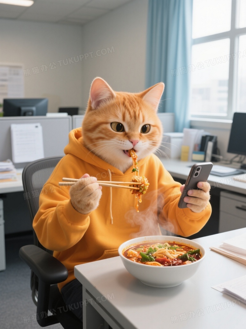 本作品内容为办公室内边吃麻辣烫边玩手机的橘猫, 格式为 jpg, 大小1 MB, 图片尺寸为1104 x 1472, 源文件无水印, 欢迎使用熊猫办公。 如认为平台内容涉嫌侵权,可通过邮件:tousu@tukuppt.com提出书面通知,我们将及时处理。